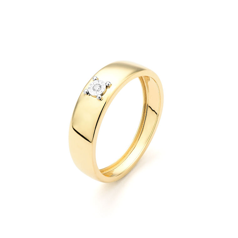 Anel Ouro Solitário Acompanhado Diamante e Brilhante